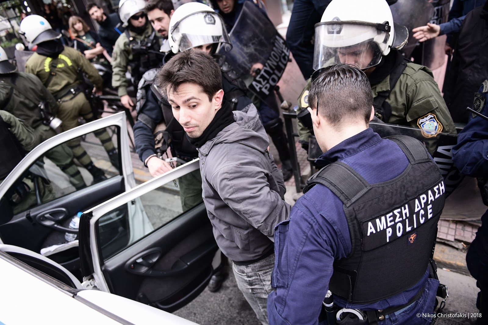 Protesters clash with riot police during a demonstration against house foreclosures, in Athens, Greece on March 14, 2018. / Σύγκρουση μεταξύ διαδηλωτών και αστυνομίας κατά την διάρκεια διαμαρτυρίας κατά των πλειστηριασμών ακινήτων, Αθήνα, 14 Μαρτίου 2018.